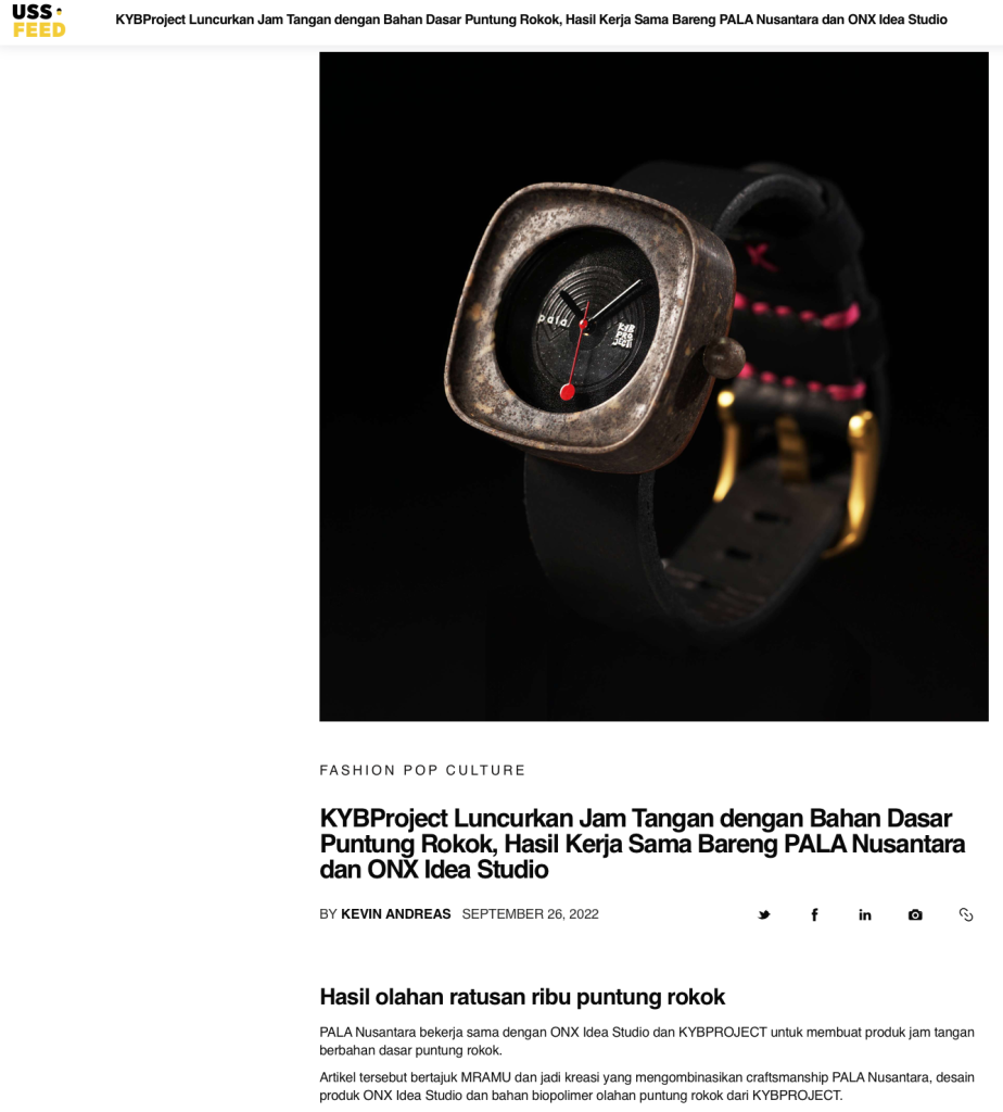 MRAMU is a special collection combining KYB Project’s mission and PALA Nusantara’s design identity. The result is candy-colored durable watch frames made from KYB’s own CellaBoard material – recycled from 264 cigarette butts in each board.